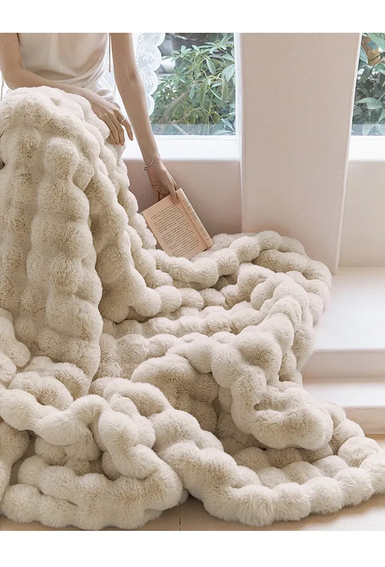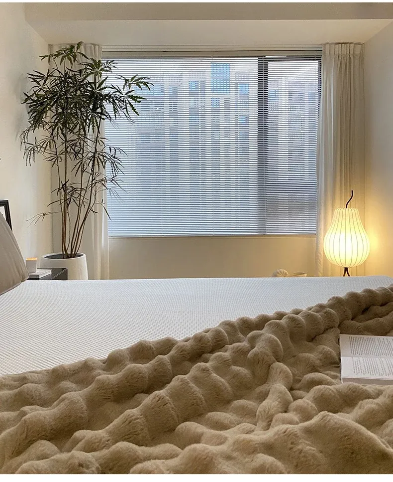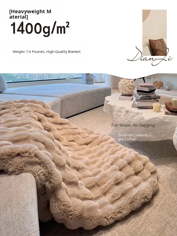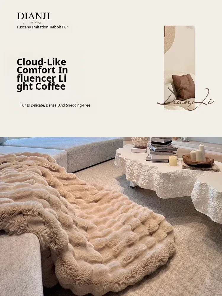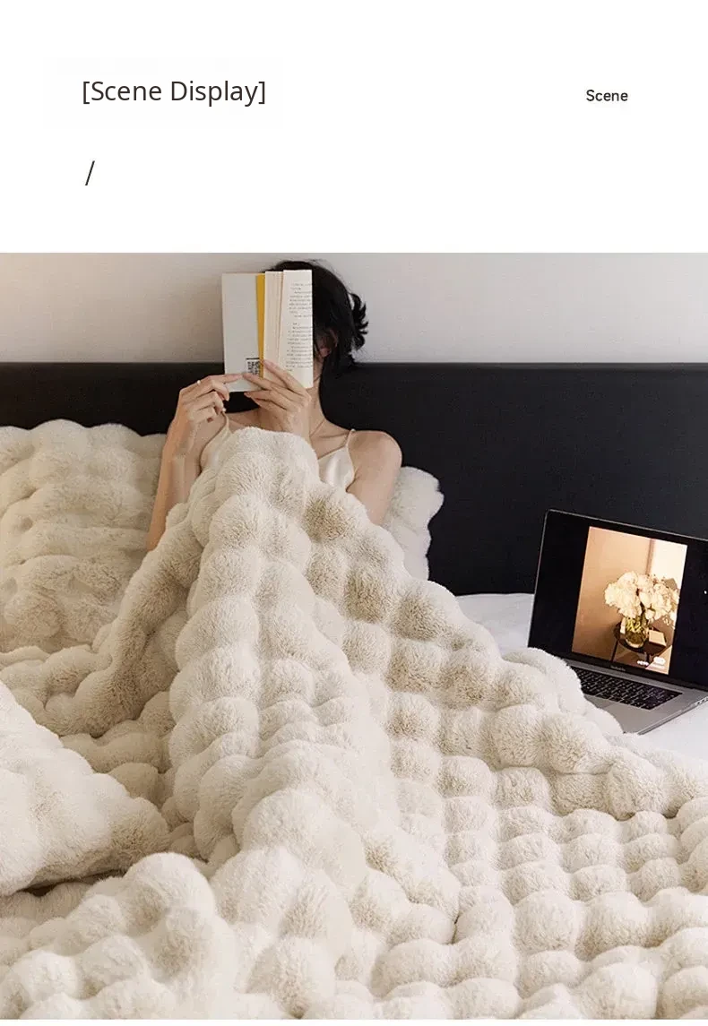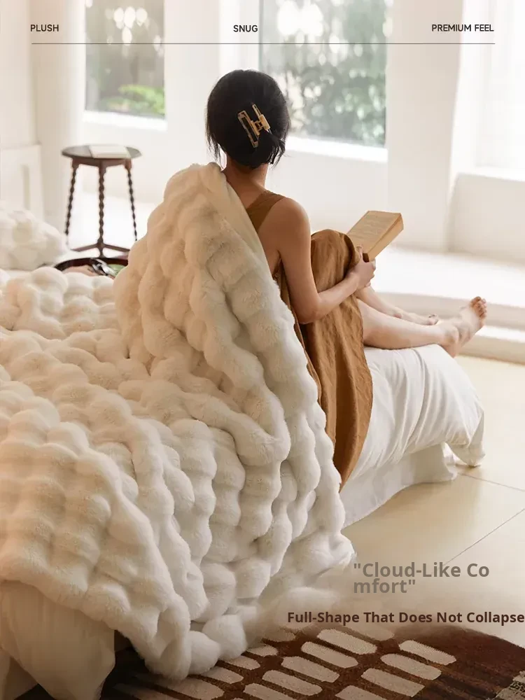 Luxury Thick Faux Rabbit Fur Blanket - Cozy Office Shawl for Single Person, Perfect for Napping on the Sofa, Machine Washable for Easy Care