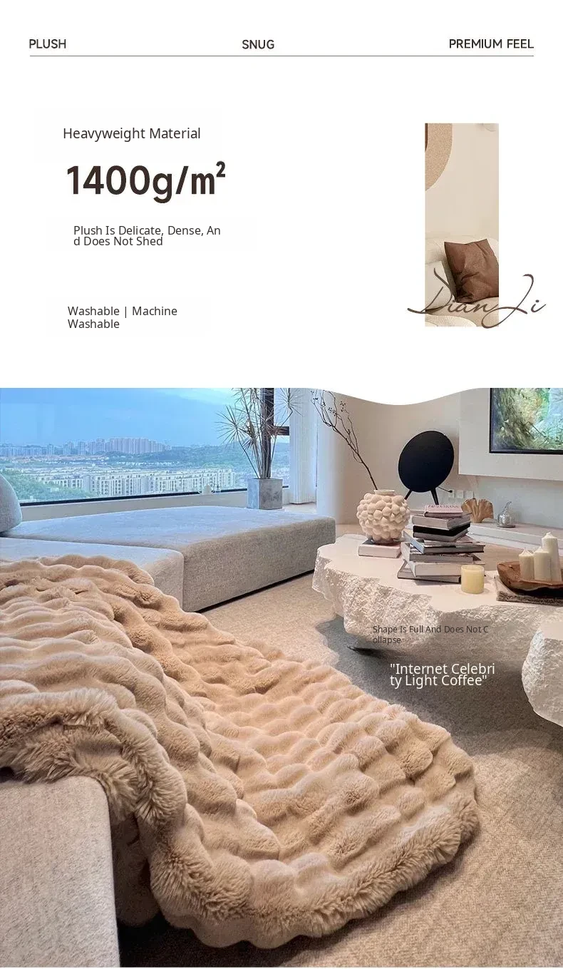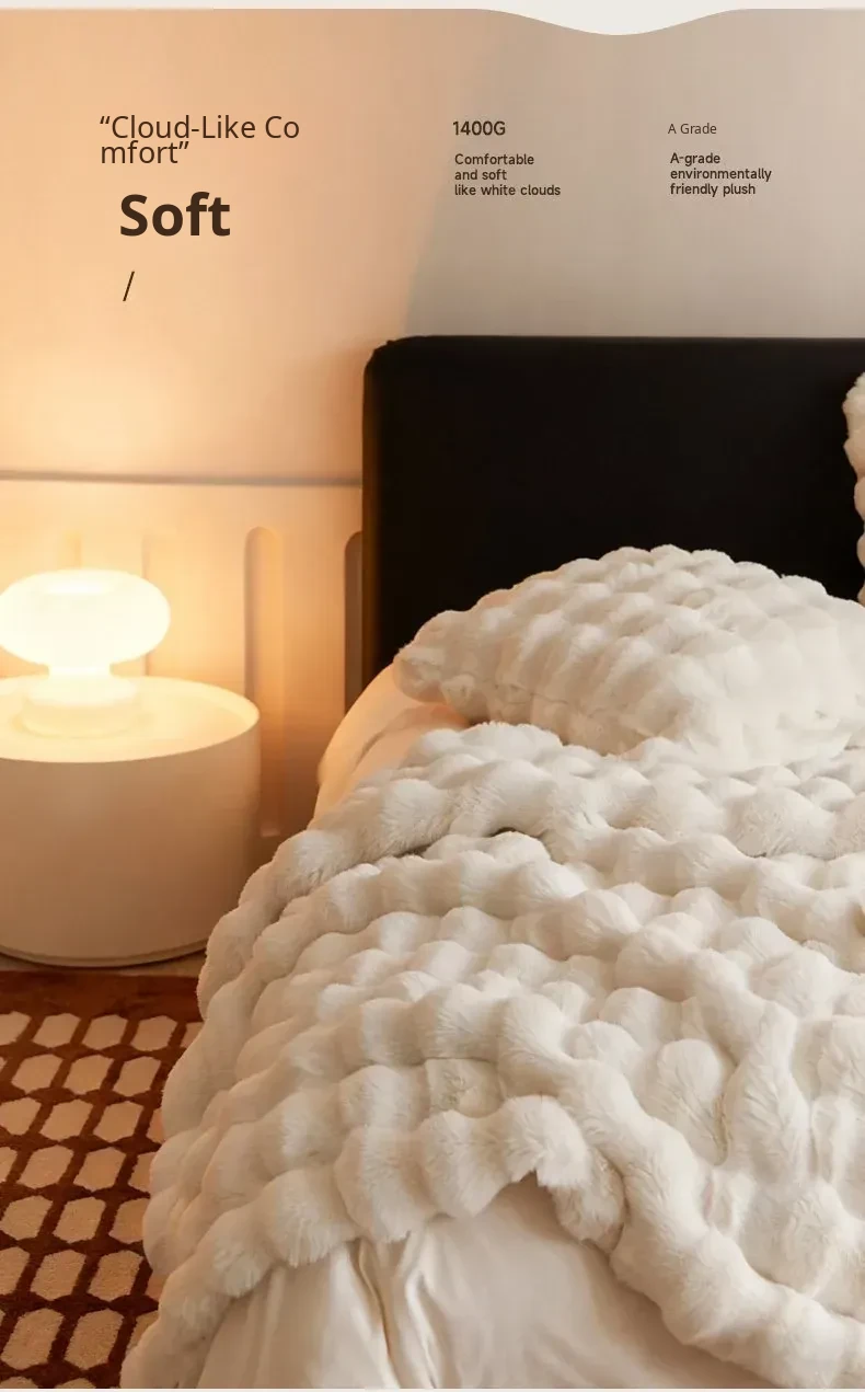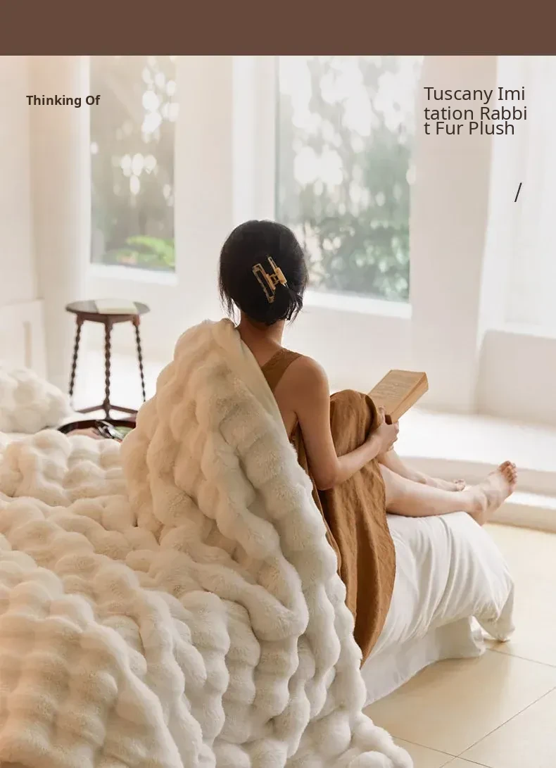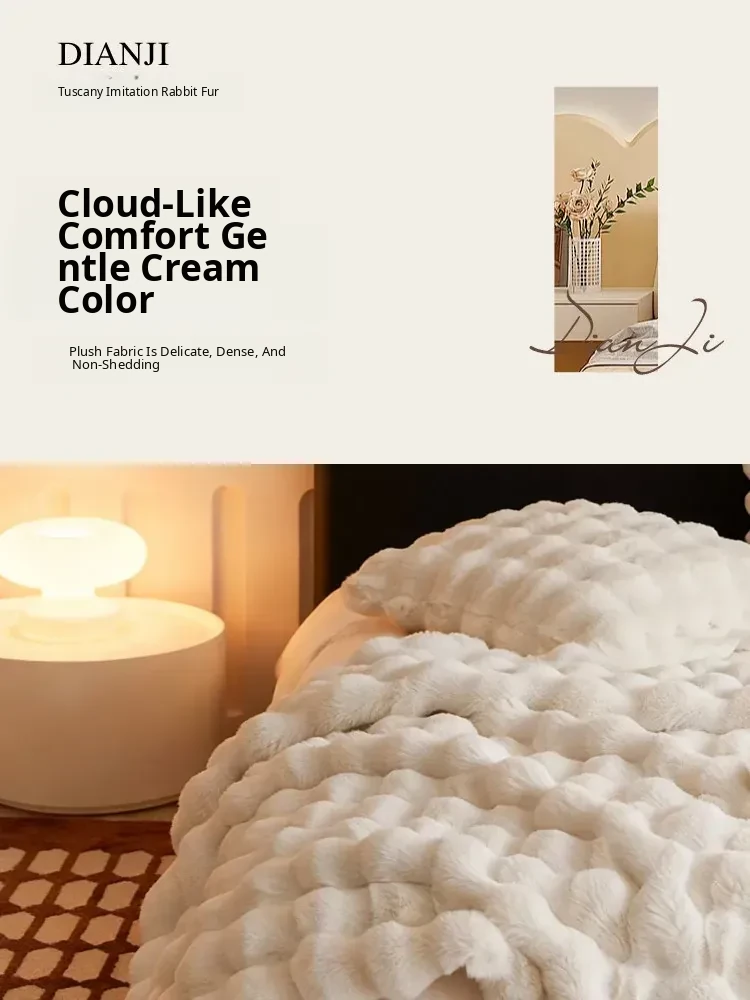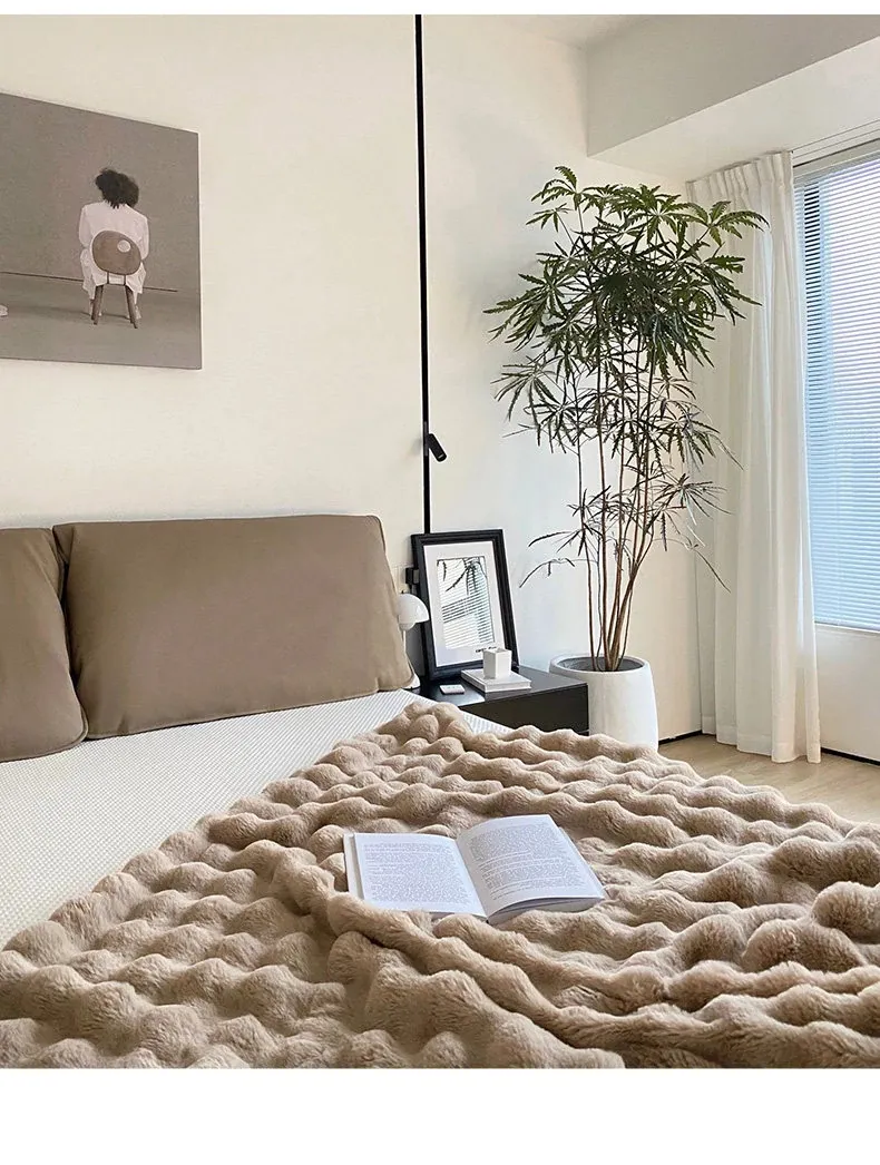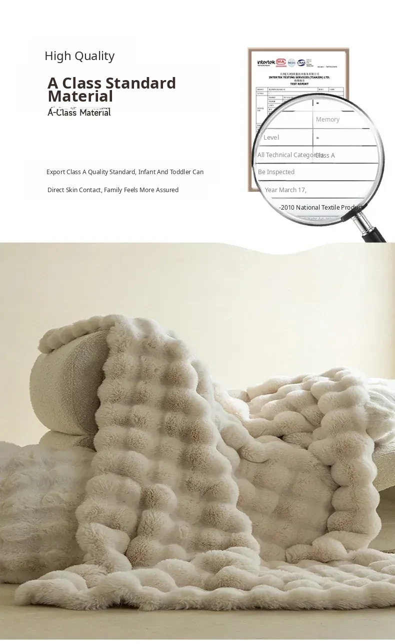 Luxury Thick Faux Rabbit Fur Blanket - Cozy Office Shawl for Single Person, Perfect for Napping on the Sofa, Machine Washable for Easy Care