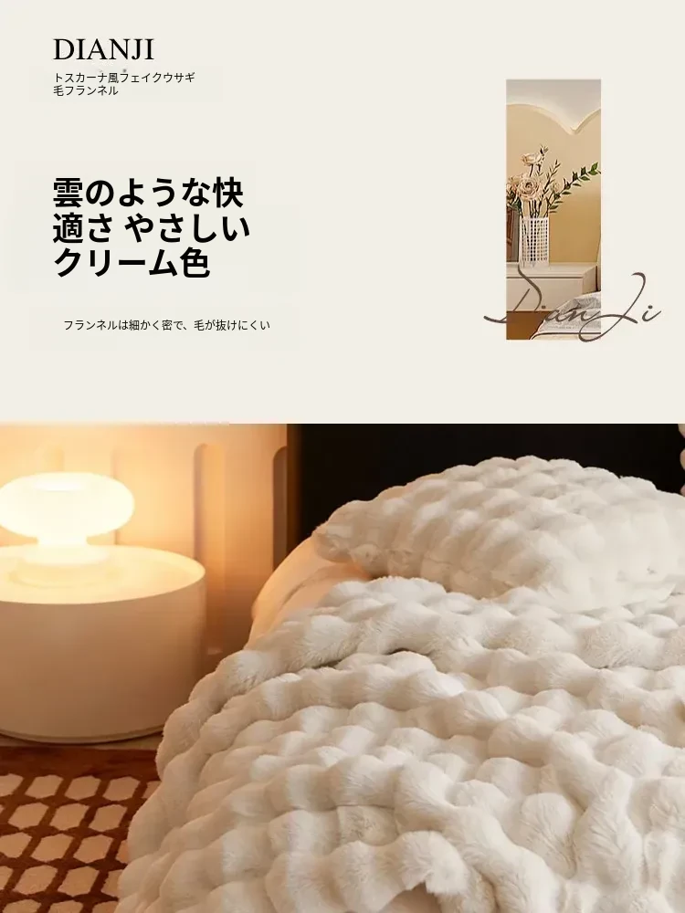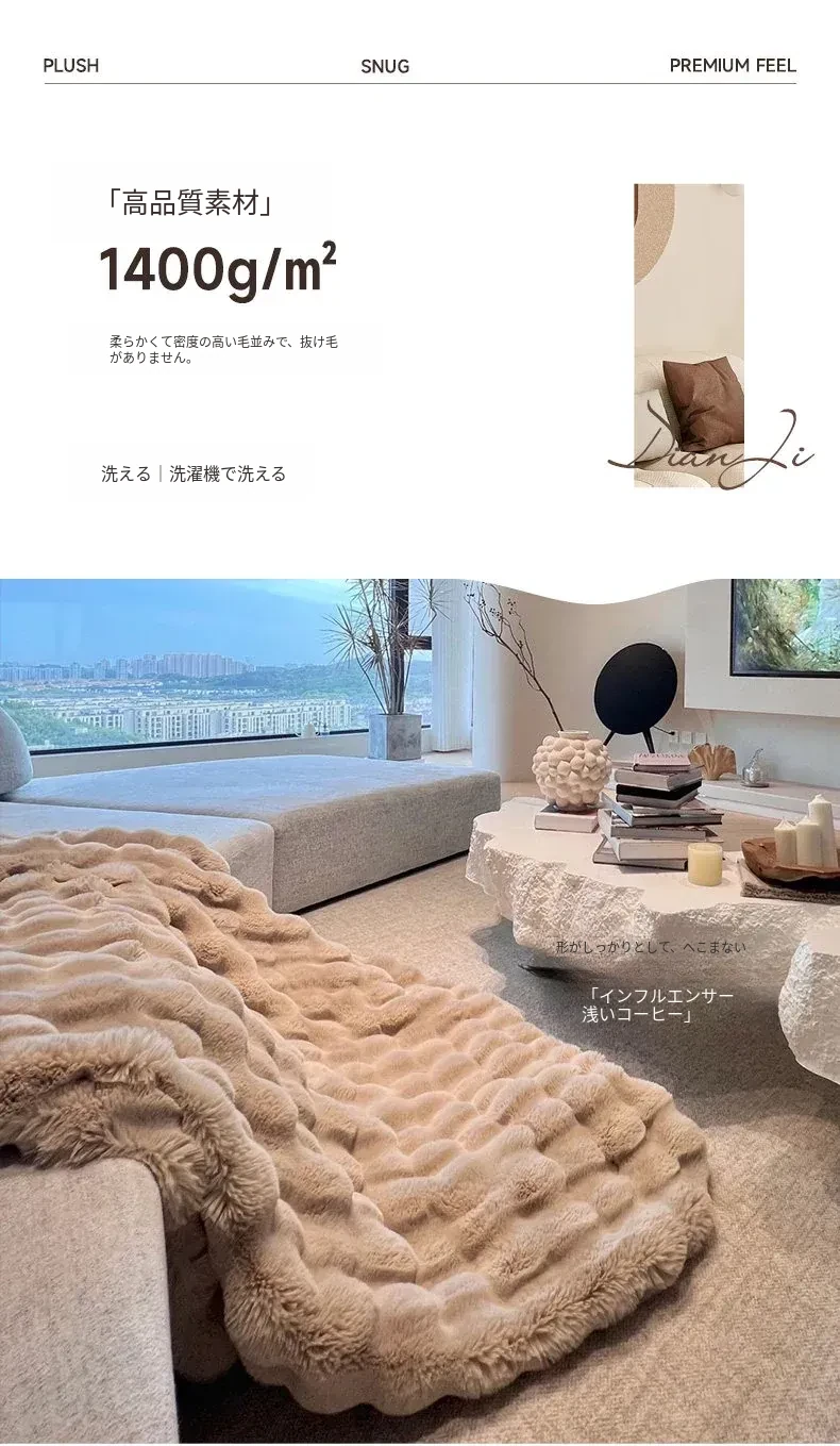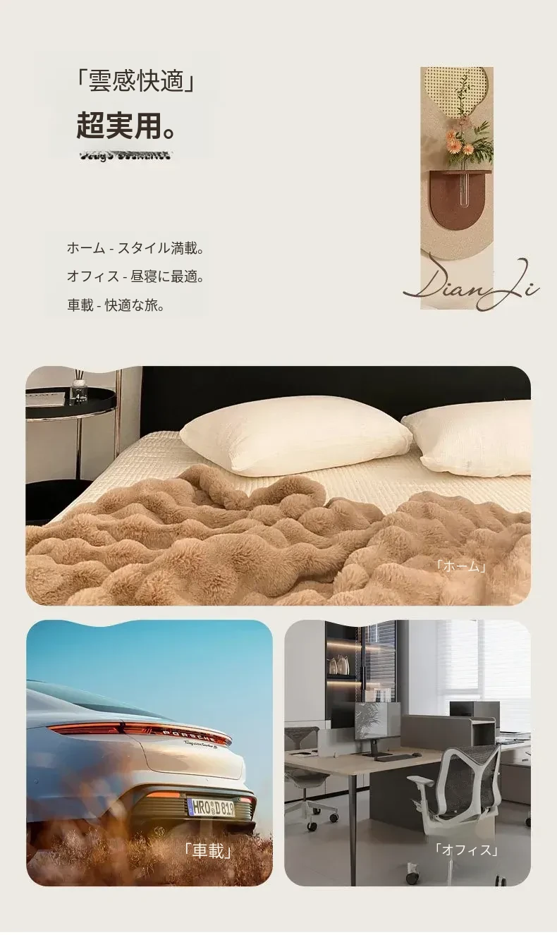 心地良い加厚フェイクファー毛布 - オフィスやお昼寝に最適な一人用ソファブランケット。高級感あふれるデザインで、洗濯機で簡単お手入れ可能!快適さとスタイルを両立させたアイテムです。