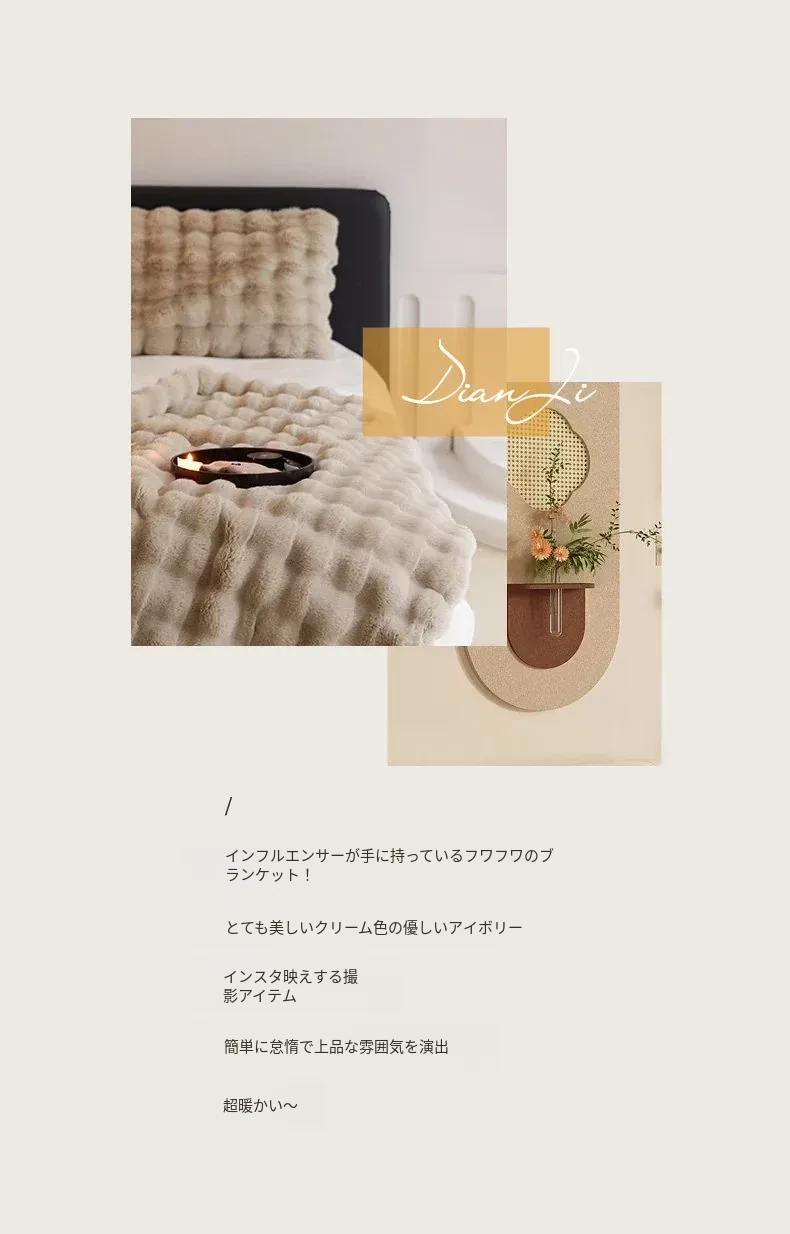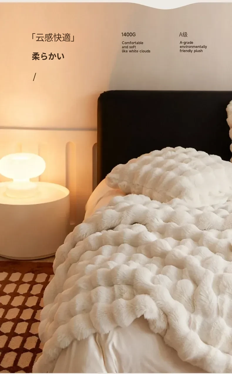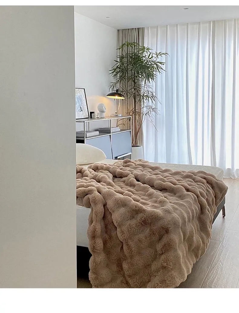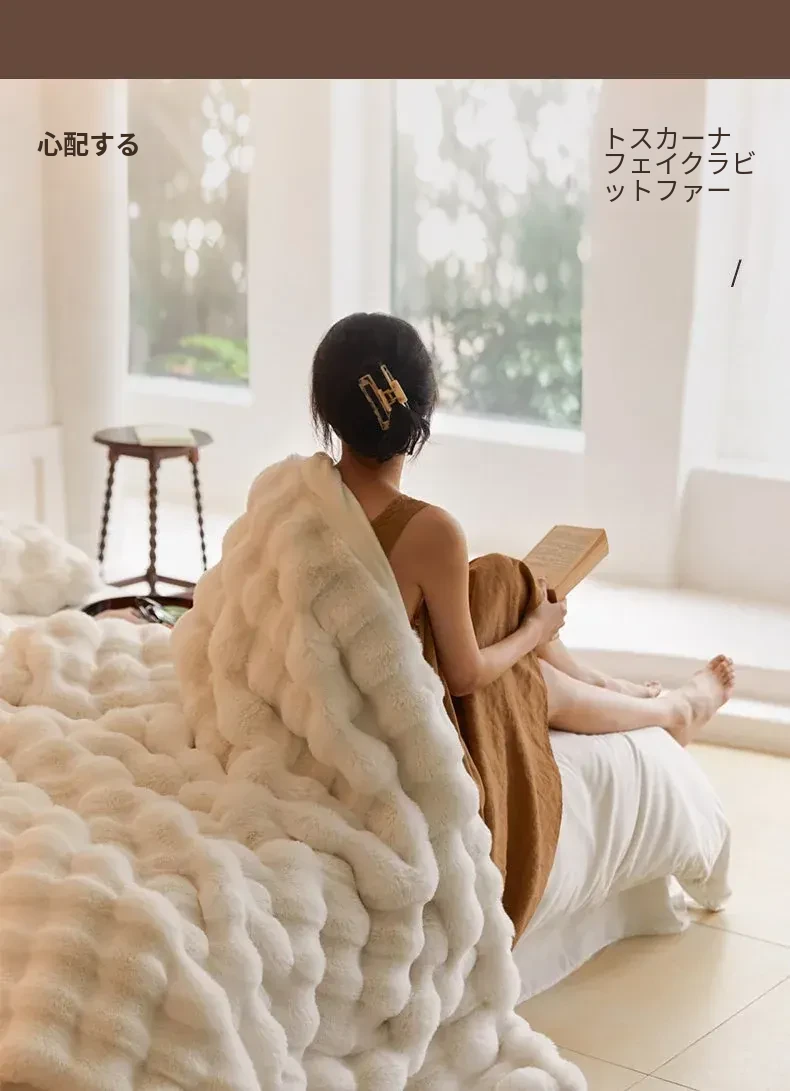 心地良い加厚フェイクファー毛布 - オフィスやお昼寝に最適な一人用ソファブランケット。高級感あふれるデザインで、洗濯機で簡単お手入れ可能!快適さとスタイルを両立させたアイテムです。
